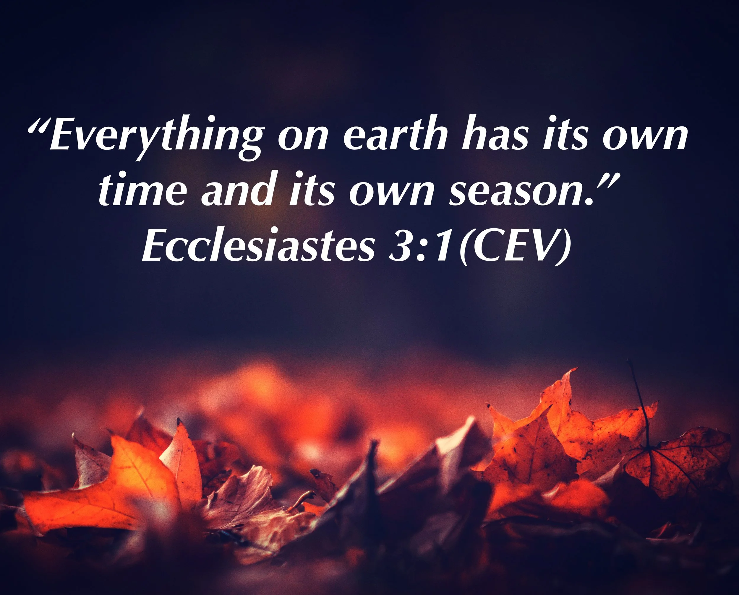“Everything on earth has its own time and its own season.”—Ecclesiastes 3:1 (CEV)